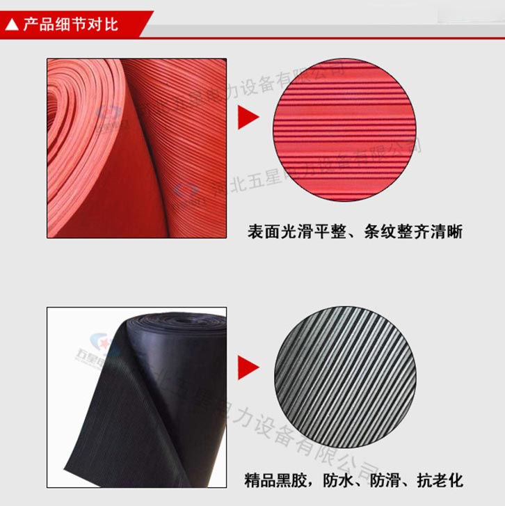 防滑絕緣膠墊產(chǎn)品分為防滑圓點(diǎn)、防滑條紋。 不含雜質(zhì):原生橡膠材質(zhì),不含次生膠,切面不會(huì)有粉末, 柔韌性好:具有優(yōu)良的絕緣性能,彈性強(qiáng),拉伸強(qiáng)度大 光澤度高:原生橡膠材質(zhì),無(wú)任何塑料成分,表面光澤度高 無(wú)氣泡:五星電力絕緣膠墊,表面無(wú)氣泡,無(wú)裂痕