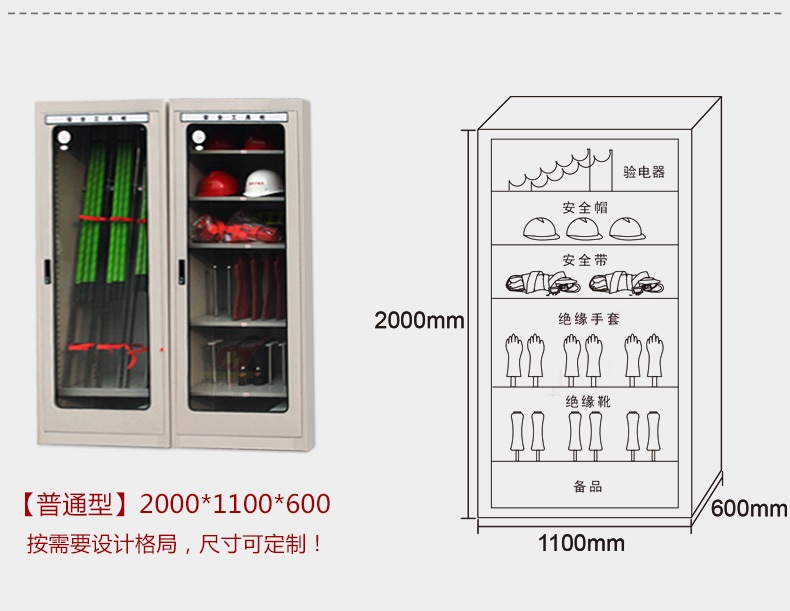 電力安全工具柜又稱安全工器具柜,按功能可以分為普通排風(fēng)除濕柜,智能烘干除濕柜,智能抽濕除濕柜等 外殼選用1.2優(yōu)質(zhì)冷板,采用磷化鋅系、藝術(shù)型靜電噴涂,高強度鋼化透明玻璃(外觀色為微機灰)。接地線均配有接地線繞線架及帶夾反光編號牌,使接地線纏繞規(guī)范不易損壞,擺放整齊使用方便;絕緣手套配有防粘連撐板,絕緣擋板、絕緣棒、驗電筆、操作桿均設(shè)有橡膠墊定位卡,安全帶、腳扣、鑰匙設(shè)有專用掛鉤,標(biāo)示牌按種類分格放置,圍網(wǎng)配有專用包,網(wǎng)桿配有專用筒,網(wǎng)桿座分格放置,防毒面具配有專用箱,呼吸器設(shè)有專用滑板。廣泛應(yīng)用于各種電壓等級的變電站、集控站、線路工區(qū)以及電力公司客服中心等單位和部門,并適應(yīng)不同溫濕度地區(qū)的使用。